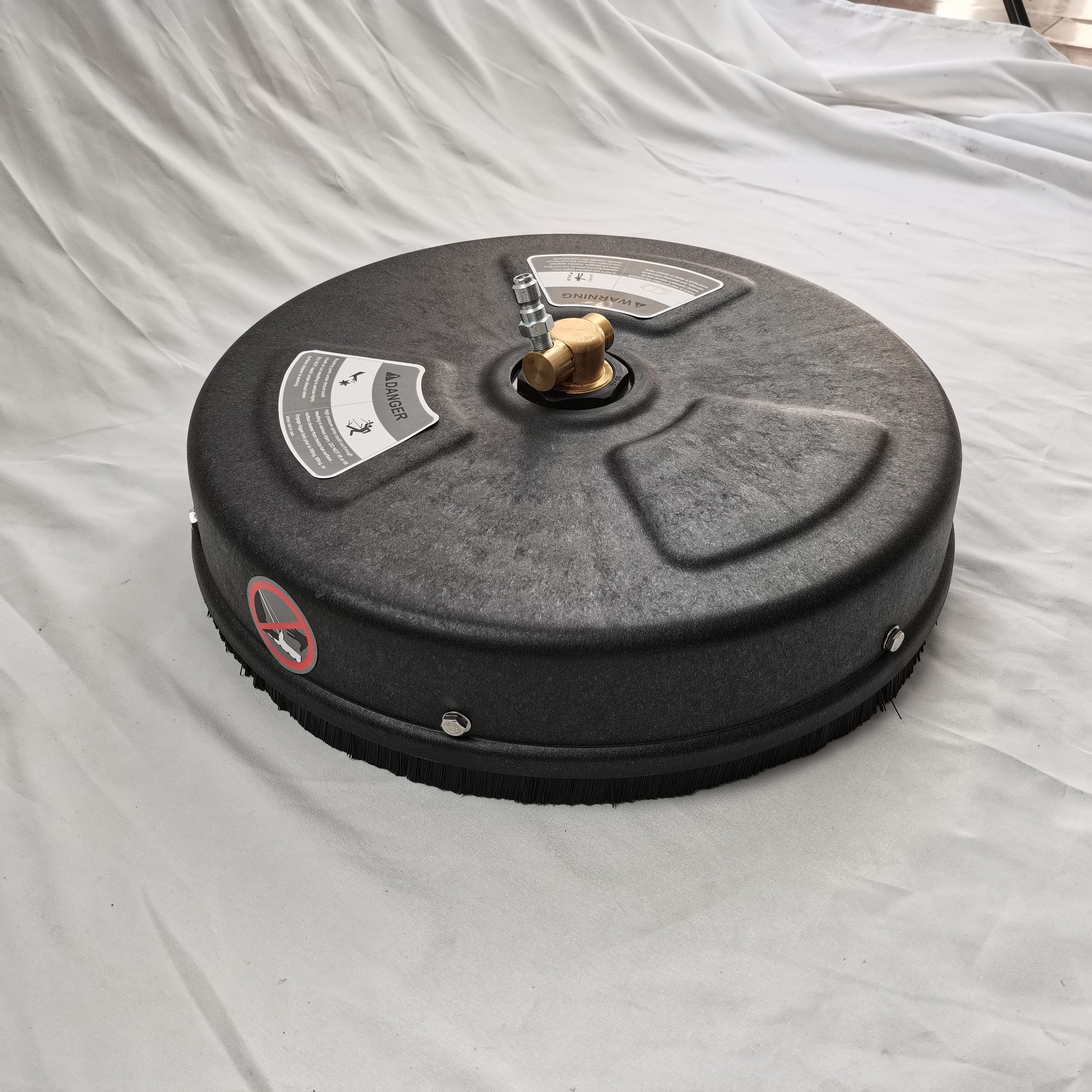 Un limpiador de superficie rotativo pequeño (15 pulgadas / 38 cm) de Mecline. Está clasificado para el uso de 2900 psi / 200 bar (presión máxima de 220 bar / 3200 psi) y un caudal de 11.4 Lpm.