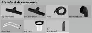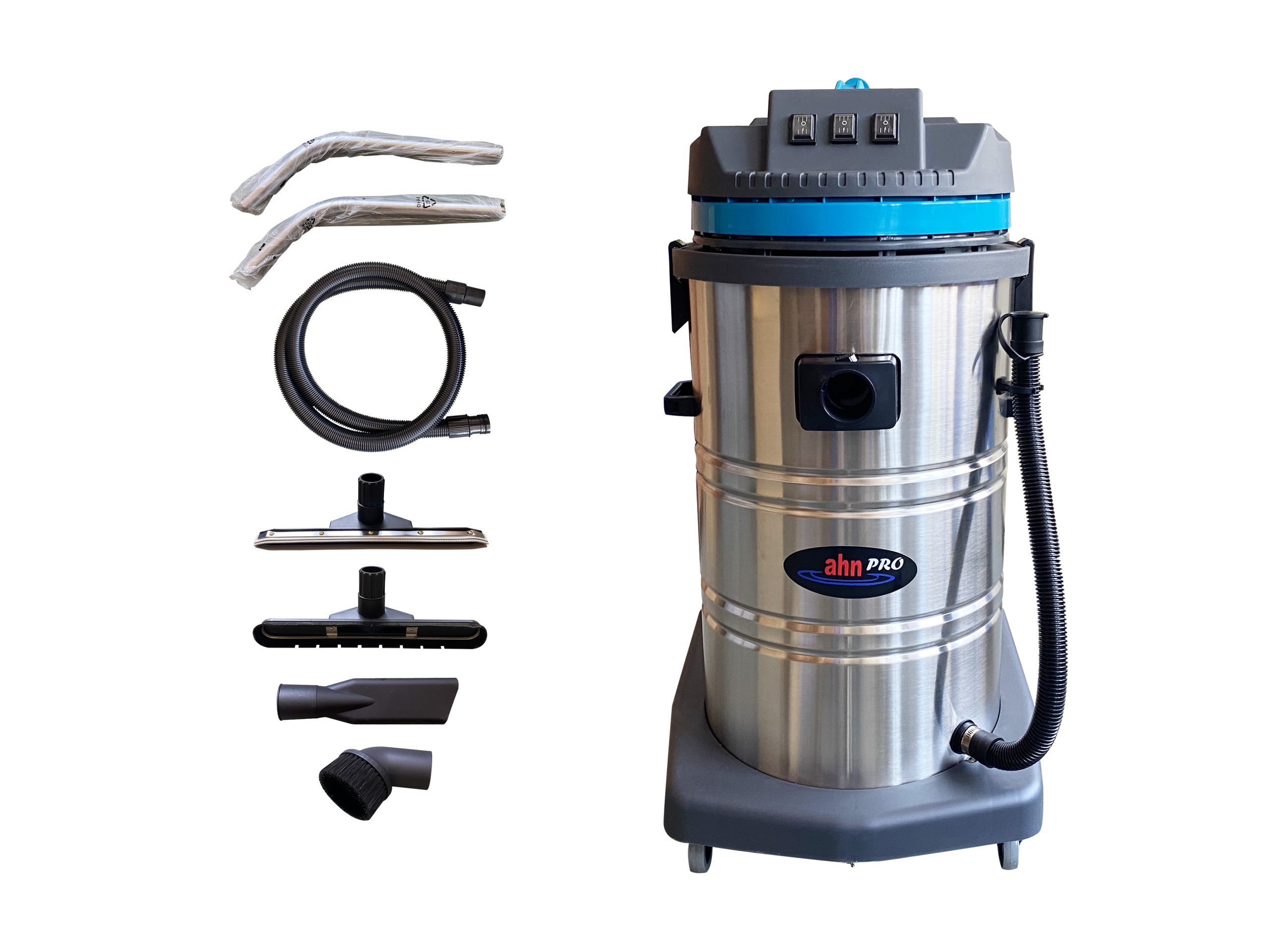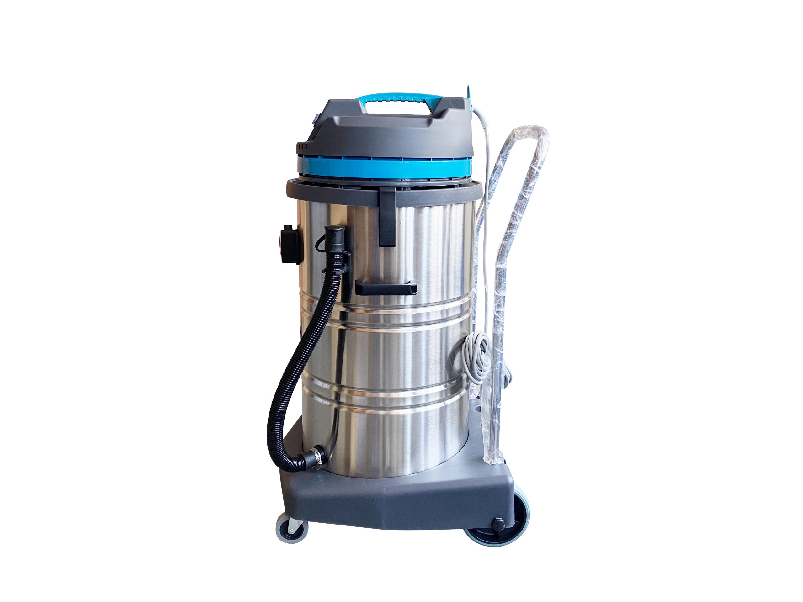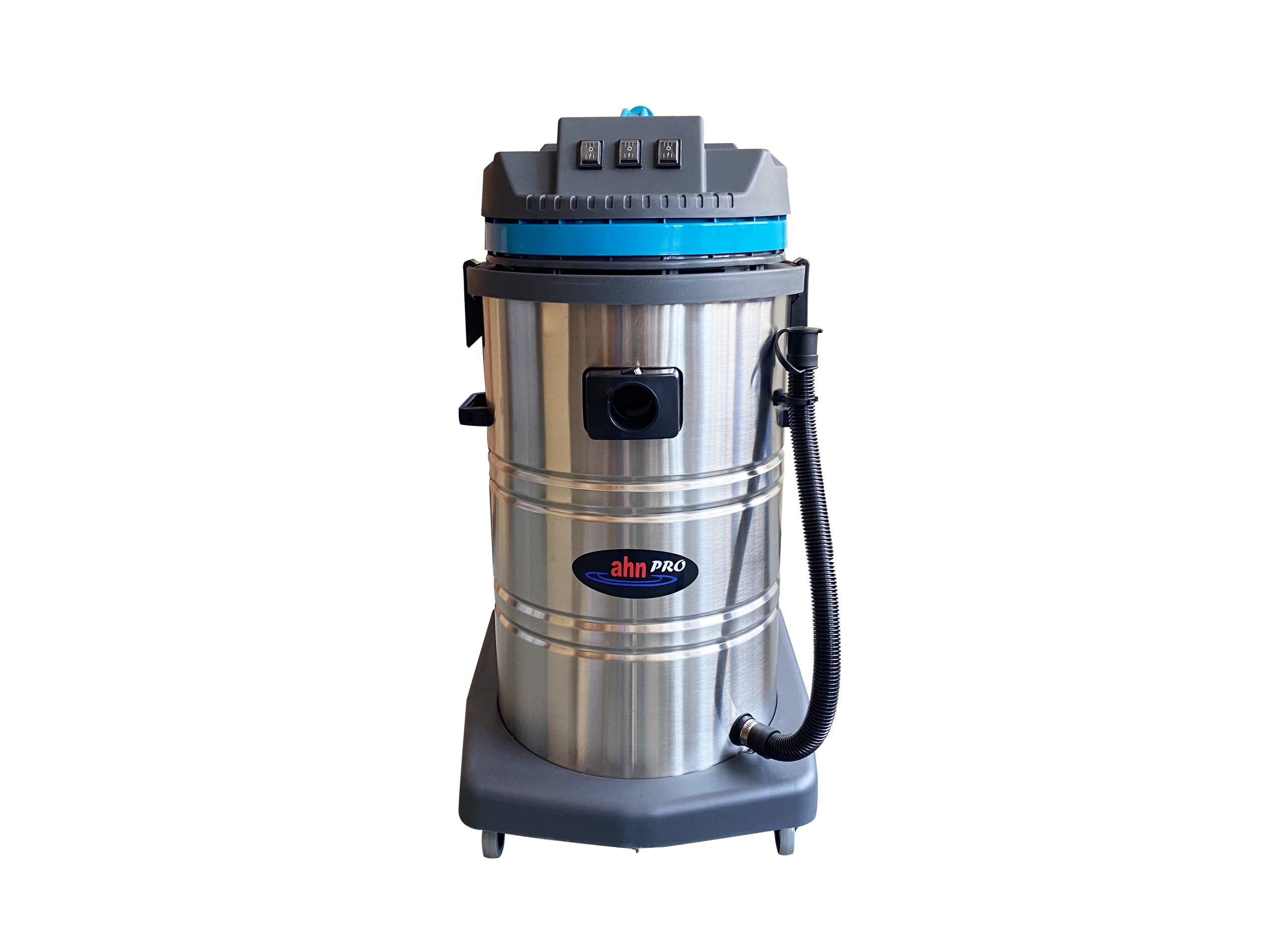 Maquina para aspirado grandes superficies, con sus ruedas y carro permite un fácil traslado con sus 3 motores le dan un poder exclusivo para aspirar rápidamente la suciedad de una superficie. Permite el aspirado de agua o líquidos (no combustibles, no tóxicos), como también el aspirado de polvo. Con sus variados accesorios permite llegar a todos los lugares incluyendo rincones, el aspirado de suciedad depositada en las superficies de talleres, en la faena de terminaciones inmobiliarias, aspirado de automóviles. El filtro de poliester es fácil de limpiar y volver a usar.