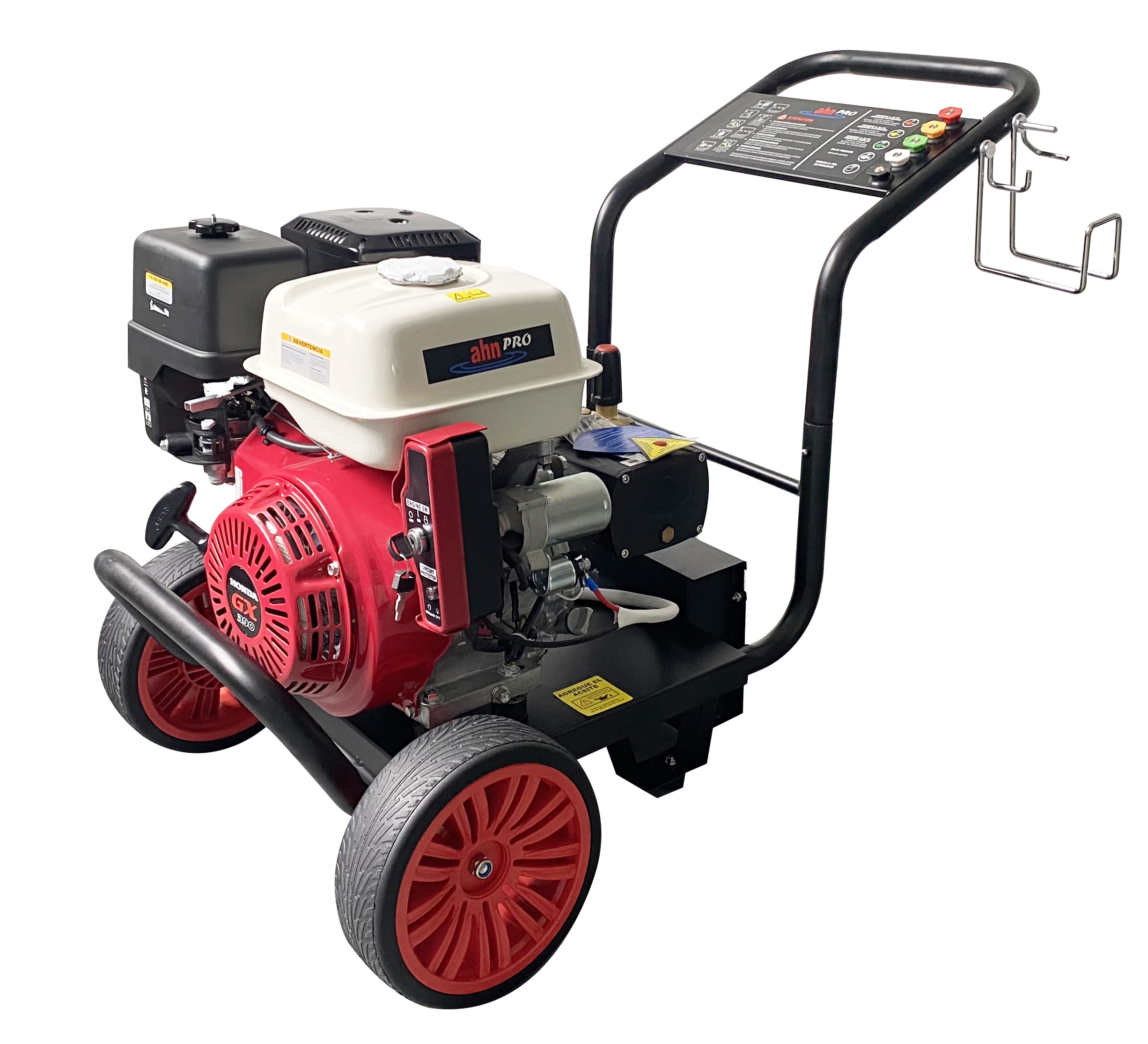 Equipo de Agua fría con Bomba Annovi Reverberi y Chasis Metálico Ruedas , Lanza con pistola automática Las hidrolavadora de Presión AHNPRO estan diseñadas para la limpieza de vehículo, barcos, muros, equipo industriales y más. Impulsado por un motor fiable Honda ofrece un diseño de eje horizontal para durar hasta cinco veces más que los motores de eje vertical. La alta calidad de la bomba . Las Hidrolavadoras AHNPRO Tienen pruebas rigurosas para garantizar el máximo rendimiento, además todos nuestros equipos son probados antes de la entregas .